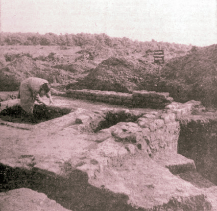 Berg vor Nideggen, 11. Juni (Eigener Bericht). Die weiteren archäologischen Ausgrabungen im Badewald, zu denen der Kreis Düren die finanziellen Mittel zur Verfügung gestellt hatte, waren von Erfolg gekrönt. Unter der örtlichen Grabungsleitung des technischen Assistenten Jentsch vom Bonner Landesmuseum wurden unmittelbar an der sogenannten Eisenstraße, die durch den Badewald verläuft, die Fundamente eines beträchtlichen Gebäudekomplexes freigelegt, dessen Räume teilweise die aus Zülpicher Funden schon bekannte Heizungsanlage aufweisen. Die Bonner Sachverständigen datieren die Anlage etwa in das zweite oder dritte Jahrhundert nach Christus. Im Grabungsgebiet gemachte Keramikfunde lassen darauf schließen, daß es sich um römische Wirtschaftsgebäude handelt, die offenbar im Zusammenhang mit einer römischen Gutsanlage stehen. Vor Monatsfrist wurde inmitten einer gerodeten Waldfläche, etwa hundert Meter vom jetzigen Fundort entfernt, der erste Tempelbau aus römische Zeit im Kreise Düren freigelegt. Die wissenschaftliche Auswertung der ganzen Badewaldfunde, die vor allem den Zusammenhang aller jetzt freigelegten römischen Anlagen klären soll, steht noch aus. Die neuen Funde im Badewald haben die vor einem Monat vom römischen Archäologen des Bonner Landesmuseums, Dr. von Petrikowits, geäußerte Vermutung bestätigt, daß die jetzt gerodete Hochfläche des Badewaldes am Fuße des Rödelsberges bedeutsame römische Siedlungsreste birgt. Auch die augenblicklich durchgeführte Spatensuche steht unter seiner Leitung und wird unter Aufsicht des technischen Angestellten Jentsch von vier Arbeitern gemacht. Schon beim ersten Suchschnitt stieß man auf die Fundamente eines 4,20 mal 4,10 Meter großen Raumes, dessen Boden aus festem Estrich besteht. Die größte Ueberraschung aber war die Freilegung einer Heizungsanlage unter diesem Raum, deren 16 Paar Hypercaust-Säulen noch leidlich erhalten waren. Unmittelbar an diesen Raum anschließend besaß das römische Gebäude einen fast gleich großen Raum, der allerdings nicht beheizt war. Die mit Kalkmörtel festgefügten Mauern des Hauses reichen bis in die Mitte der Jahrhunderte alten Straße und liegen ganz dicht unter dem Straßenniveau. Die über die Gebäudereste führende Straße, die vermutlich in großen Zügen der alten Römerstraße Venlo - Cröv folgt, wurde vor etwa 120 Jahren durch Umlegungen begradigt und ist dabei offenbar ohne Wissen der damaligen Straßenbauer direkt über die römische Siedlung geführt worden. Jünger als der Tempelbau Weitere Ausgrabungen an dieser Stelle müssen das Ausmaß der Anlage und seinen Charakter noch endgültig festlegen. Schon jetzt ist an den sauber freigelegten Grundrissen zu sehen, daß sich das Gebäude an beiden Seiten noch weiter ausdehnt. Tief in die Erde gehende Mauern lassen vermuten, daß ein Teil der Bauanlage auch unterkellert war. Anhand der zahlreichen Keramikfunde, eines Webgewichtes, vieler Topfscherben, Teilen von Schalen und kunstvoll gebrannten Gefäßen, die in einer Abfallgrube in drei Siedlungsschichten aufeinanderlagen, läßt sich mit Sicherheit vermuten, daß es sich bei dem Gebäude um Wirtschaftsräume handelt. Inwieweit sie mit der hundert Meter weiter freigelegten Tempelanlage aus gallo-römischer Zeit in Zusammenhang steht, ist noch ungeklärt. Die Wirtschaftsgebäude sind etwa 100 bis 150 Jahre jünger als der seltene kultische Bau. Klassisches Beispiel für römische Bauanlagen Die Ausgrabungen im Badewald haben das lebhafte Interesse der Bevölkerung im Nideggen-Berger Raum gefunden. Zahlreich ist der Besuch, den die Ausgraber tagtäglich an ihrer Grabungsstelle haben. Die Fundstelle ist geradezu ein klassisches Beispiel für römische Bauanlagen und ein Beweis für die hohe Baukunst, die auch bei den ländlichen römischen Bauten entwickelt wurde. Die Heizungsanlage ist genau zu erkennen. Von einer tiefer gelegenen Feuerungsstelle (man fand große Mengen Holzkohlereste) ging die heiße Luft unter dem Fußboden des Raumes und durch Tonkanäle, die in die Wände eingebaut waren, um den ganzen Raum. Die Mauern des Gebäudes bestehen aus der sogenannten Mauerstickung als festes Fundament im Boden, dem darüber liegenden Sockel und dem eigentlichen Maueraufbau. Zum Abschluß der Grabungsarbeiten, der etwa in acht Tagen zu erwarten ist, soll noch ein weiterer Grabungsschnitt am Tempelbau gemacht werden, der die wissenschaftliche Auswertung der gesamten Grabung erleichtern soll.