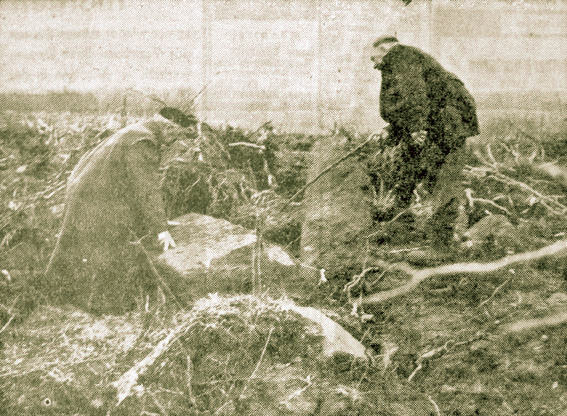 Berg vor Nideggen, den 22. April (Eig. Ber.) Im Gebiet des alten Badebaches, zwischen dem von Legenden umwogenen Clemensstock auf der Höhe bei Berg vor Nideggen und der höchsten Erhebung des Badewaldes, dem Rödelberg, wurde vor wenigen Tagen bei Rodungsarbeiten eines Teiles dieses alten Waldes ein neuer römischer Fund freigelegt. Die sechs schweren rohbehauenen Buntsandstein-Quadern, die von der Motorkraft einer Rodehexe ans Tageslicht gezerrt wurden, deuten nach Ansicht des Staatl. Bodenpflegers im Kreise Düren, Jakob Gerhards, auf eine reiche Grabanlage aus der römischen Siedlungszeit des dritten oder vierten Jahrhunderts nach Christus hin. Der Fund wurde in unmittelbarer Nähe einer 1937 entdeckten ausgedehnten römischen Siedlung rechts und links der alten Römerstraße Venlo-Cröw gemacht, die an dieser Stelle auch den mittelalterlichen Namen Eisenstraße führt. Der Direktorial-Assistent des Bonner Landesmuseums, Dr. Böhme, und einige Mitarbeiter besichtigten am Donnerstag die Fundstelle. Es ist damit zu rechnen, daß von seiten des Landesmuseums an dieser Stelle weitere Nachforschungen mit dem Spaten durchgeführt werden, um Umfang und Bedeutung dieser erneuten römischen Funde im Badewald festzustellen. Der Badewald, ein ehemals etwa 1600 Morgen großes Waldgelände westlich der Straße Wollersheim - Berg bis ins Rurtal bei Abenden und die landschaftlich schöne Umgebung von Berg vor Nideggen sind ein geschichtsträchtiges Land. Entlang der alten Römerstraße, die dieses Gebiet durchschneidet, wurden in den letzten Jahrzehnten in der Nähe des Clemensstock fünf römische Siedlungen freigelegt, die hier auf dieser dominierenden Höhe mit einem weiten Blick ins rheinische Land eine beherrschende Stellung hatten. Außerdem hat Bodenpfleger Gerhards, mit dem wir eine Exkursion durch dieses römische Siedlungsgebiet machten, eine große Anzahl weiterer Siedlungen entlang der Straße bis zum Rödelsberg in seine Meßtischblatt-Karte eingezeichnet. Auf Schritt und Tritt begegnen einem hier oben die alten Zeugen der römischen Besiedlung des ehemaligen Eburonenlandes. Die grünen Felder sind mit hellroten römischen Ziegelscherben, Firstziegeln und Trümmerresten der roten Sandsteinfundamente geradezu besät. Immer neue Funde Wohl kaum einer im Nideggen-Berger Gebiet ist so mit der römischen Vorgeschichte des Badewaldes vertraut, wie der Bauer Heinrich Fischer aus Berg vor Nideggen, der schon seit Jahrzehnten, zusammen mit dem Geschichtsforscher Pfarrer Pohl aus Blens und dem Staatlichen Bodenpfleger jeden Quadratmeter Boden des Badewaldes abgesucht und in Augenschein genommen hat. Immer wieder hebt Bauer Fischer bei unserem Gang durch die Gemarkungen seinen Spazierstock hoch, um auf neue Funde, interessante Bodenbildungen und die Vorkommen einer seltenen Flora aufmerksam zu machen, von der der verstorbene Dürener Professor Kurtz schon sagte, daß sie außer im Badewald nirgendwo mehr auf dem europäischen Kontinent anzutreffen sei. Seit man 1936 begann, große Teile des Badewaldes planmäßig zu roden, um den ausgezeichneten Boden dem überall in Deutschland bekannten Berger Braugerstenanbau nutzbar zu machen, gab es hier oben immer neue Ueberraschungen. So wartete man bei den letzten Rodungsarbeiten, die im März dieses Jahres begann und 120 Morgen Knüppelholz des Badewaldes umfassen, förmlich auf neue Funde, die auch prompt mit der jetzt entdeckten Grabanlage eintrafen. Mit wachen Augen beobachtet Die Bauern von Berg und die Rodungsarbeiter wissen um die historische Bedeutung ihres Waldes. Deshalb verfolgen sie jeden Erdaufwurf mit wachen Augen. Als die Rodehexe an der höchsten Stelle des augenblicklichen Rodegebietes ansetzte, war es allen klar, daß neue Funde zutage treten würden. Schon die an dieser Stelle auf dem Waldboden verstreut liegenden Sandsteintrümmerreste deuteten darauf hin. Die Ueberraschung war jedoch groß, als der tief ins Erdreich scharrende Dorn des Baggers die sechs behauenen Sandsteinquadern nach oben zerrte. Jeder von ihnen hat ein Gewicht von etwa 40 Zentnern und Ausmaße von 1,70 Meter mal 60 mal 50 Zentimeter. Die Steine wurden als Quader aus einem Sandsteinbruch zwischen Berg - Wollersheim festgestellt, der allerdings schon seit Menschengedenken nicht mehr ausgebeutet wird. Die Annahme, daß es sich um die Grabanlage eines reichen Römers handelt, wird noch dadurch erhärtet, daß bei gleichen Rodungsarbeiten 50 Meter südlich, direkt an der alten Römerstraße, zahlreiche römische Siedlungsreste ebenfalls freigelegt wurden. Wurde hier Cäsar besiegt? Wie Pfarrer Pohl aus Blens, so vertritt auch Herr Fischer die Hypothese, daß der Rödelsberg und das umliegende Gebiet das von den Wissenschaftlern und Forschern seit langem gesuchte Winterlager Cäsars, das Lager Atuatuca Eburonum, beherbergte, über dessen Standort sich die Geschichtsforscher nicht einig werden können. Zwar ist diese Annahme eine von etwa 20, die anderer Altertumsforscher vertreten. Aber nicht nur die Nähe der alten Römerstraße, der Fund einer Cäsarmünze an dieser Stelle durch Pfarrer Pohl und die vorhandenen Wälle und Mauern, sondern die von Cäsar selbst in seinem fünften Buch gegebenen Beschreibungen des Gebietes lassen die Richtigkeit dieser Hypothese zumindest wahrscheinlich sein. Schon der 1908 verstorbene Onkel des Bauern, Pfarrer Jos. Fischer, der lange Jahrzehnte sich auch als Altertumsforscher in England und Frankreich betätigte und in seinem letzten Lebensjahrzehnt seine ganze Aufmerksamkeit und Forscherkraft auf die Festigung dieser Hypothese verwandte, sah im Rödelsberg das alte Römerlager. Wenn auch die jetzt gemachten Römerfunde einige Jahrhunderte jünger sind, so besteht doch die Möglichkeit, daß eines Tages die gleiche Rodehexe, die in den letzten Tagen wieder in so reichem Maße römische Funde aus dem Dunkel der Vergangenheit ans Tageslicht zog, einmal den schlüssigen Beweis erbringen kann, daß die Legionen Cäsars an dieser Stelle die li