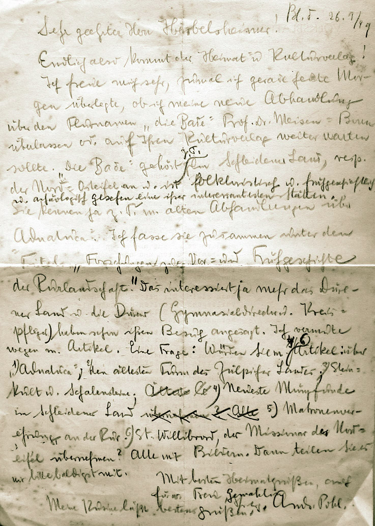 1. Schreiben des Volksblatt-Verlages anläßlich der Wiederherstellung vom 23. September 1949 2. Antwortentwurf von Pfarrer Pohl vom 26. September 1949