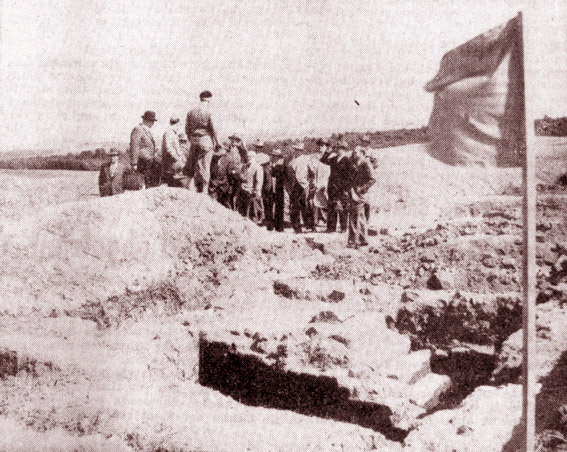 Berg vor Nideggen, 29. Juli (Eigener Bericht). Die vor kurzer Zeit im Badewald eingestellten archäologischen Grabungen werden nach der Ernte wieder aufgenommen werden können. Der Kreis Düren stellte dazu auf Beschluß des Kreisausschusses einen Betrag von 2000 DM zur Verfügung. Die Hauptlast der finanziellen Kosten trägt allerdings die Deutsche Forschungsgemeinschaft Bad Godesberg, die für diese wichtigen Arbeiten auf Antrag des Grabungsleiters Dr. von Petrikowits 6000 DM bereitstelle. Die Arbeiten waren vor einiger Zeit wegen mangelnder finanzieller Mittel abgebrochen worden. Am Mittwochnachmittag weilte der Kreisausschuß zu einer Besichtigung im ausgedehnten Grabungsfeld des Badewaldes. Der Staatliche Bodenpfleger des Kreises, Jakob Gerhards, und der örtliche Grabungsleiter, Archäologie-Assistent Jentsch, erläuterten die bisherigen gallo-römischen Funde aus dem zweiten bis dritten Jahrhundert nach Christus. Der Kreisausschuß war von der Ausdehnung und Bedeutung dieser seit einigen Monaten durchgeführten Grabung stark beeindruckt und gab in einer anschließenden Sitzung, die auf der Nideggener Burg stattfand, seine Zustimmung zu einem weiteren Grabungs-Zuschuß. Damit stellte der Kreis bis jetzt 3000 DM für die Badewald-Ausgrabungen bereit.