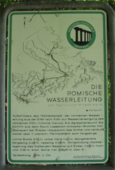 Die Höhenverhältnisse der Berghänge beiderseits der Erft zueinander machten einen Talübergang für die Wasserleitung erst bei Rheder möglich. Und selbst dort war noch eine Aquäduktbrücke von 550 m Länge und 5 m Höhe zu errichten gewesen. Von diesem Bauwerk sind am Ort allerdings keinerlei Reste mehr zu sehen, das Material wurde im Mittelalter abgebrochen, um es ein zweites Mal zum Bauen zu verwenden. Landschaftsverband Rheinland, Rheinisches Amt für Bodendenkmalpflege, 53115 Bonn Eifelverein 52349 Düren |